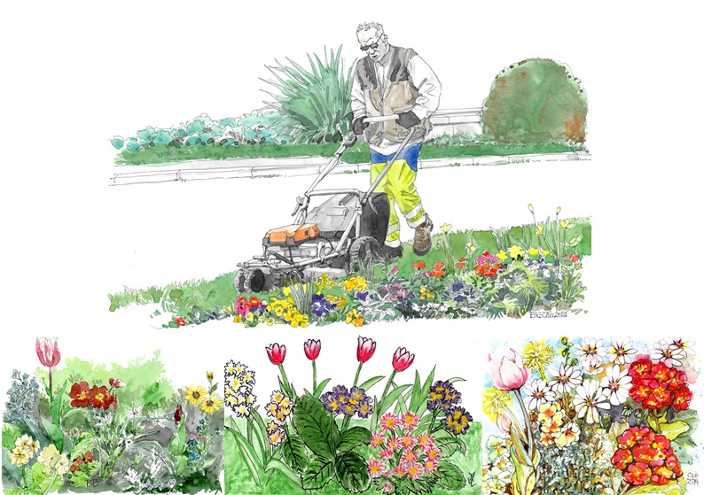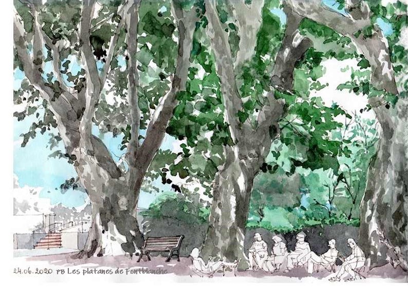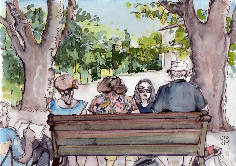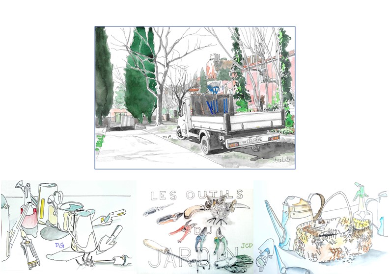 Dans la ville, par la volonté et le travail des hommes, elle s’apprivoise en de nombreux parcs et jardins dont nous profitons comme motifs à nos croquis.
